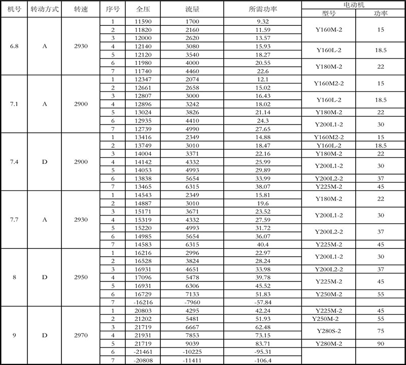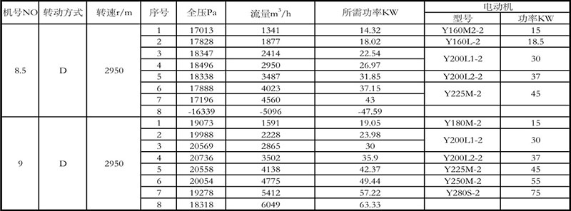 9-12風(fēng)機(jī)為單吸入,機(jī)號有No6.8A、7.1 A、7.7A、 8D、9D共五個機(jī)號。